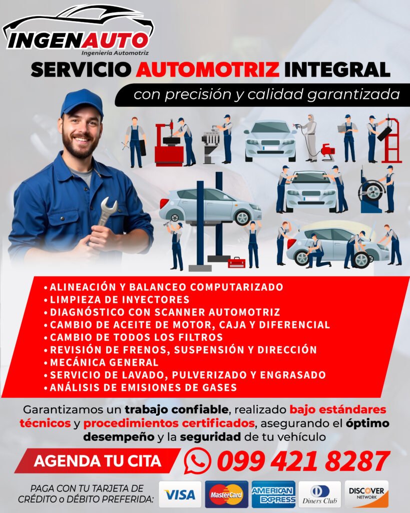 En Ingenauto Cía. Ltda. nos especializamos en el cuidado integral de vehículos, brindando soluciones técnicas confiables para mantener la seguridad, el rendimiento y la durabilidad de cada automóvil.